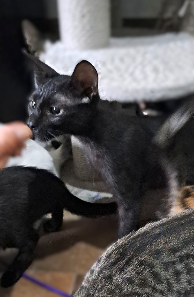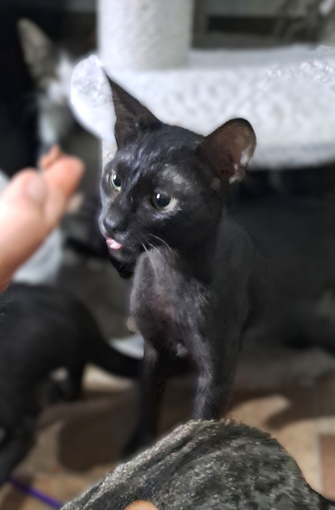- Beschreibung: die Geschwister Hexe, Morle u.a. wurden zusammen mit der Mama auf der Straße gefunden. Alle konnten bei einer Pflegestelle unterkommen und weitere der Geschwister haben bereits ein Zuhause gefunden. Alle sind altersgerecht verspielt, katzensozial und brauchen auch in ihrem neuen Zuhause einen Katzenkumpel an ihrer Seite. Wir wünschen uns für sie Menschen, die ihne die Zeit und das Verständnis einer längeren Eingewöhnungsphase geben und sich über einen „schwarzen Schatten“ im Haushalt feuen kann.